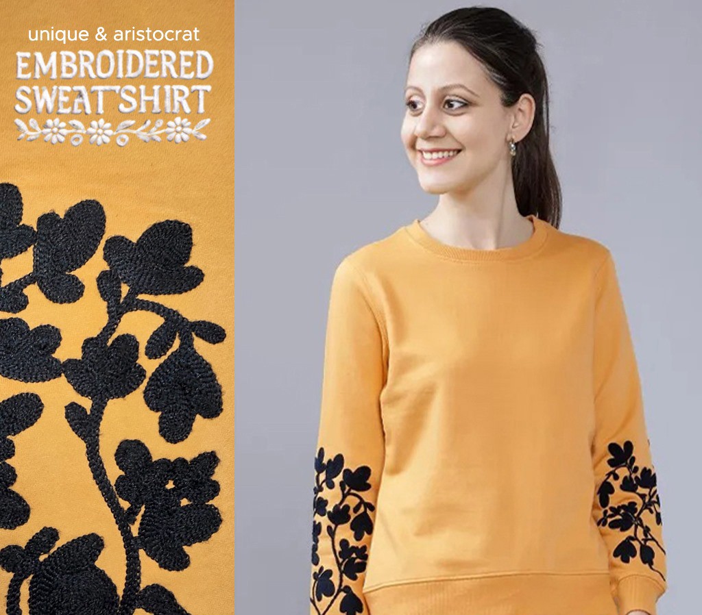 Premium Orange Soft Fleece Embroidered Women Sweater~ 1 Pcs
